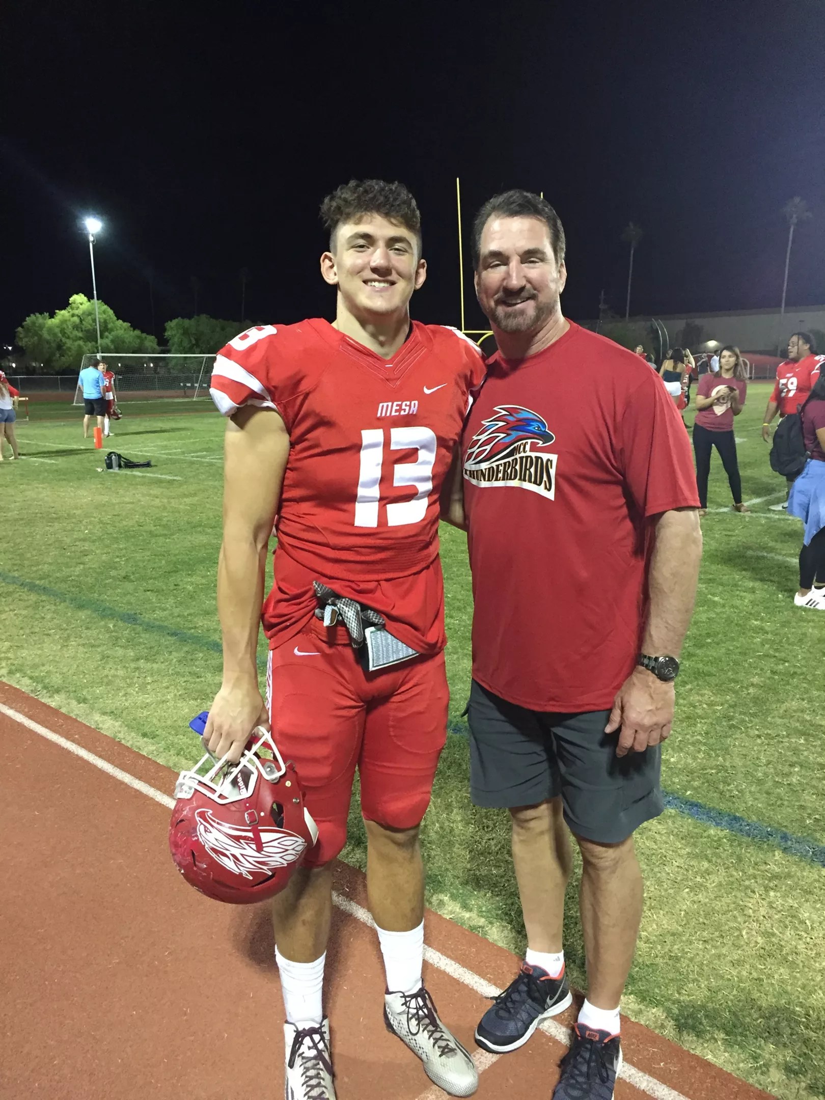 A successful season – one that attracted the attention of major college scouts – climaxed in Mesa’s appearance in the Valley of the Sun Bowl on Dec. 2. With Babe in attendance, Luke caught three passes in the first half before a sprained ankle limited his effectiveness.