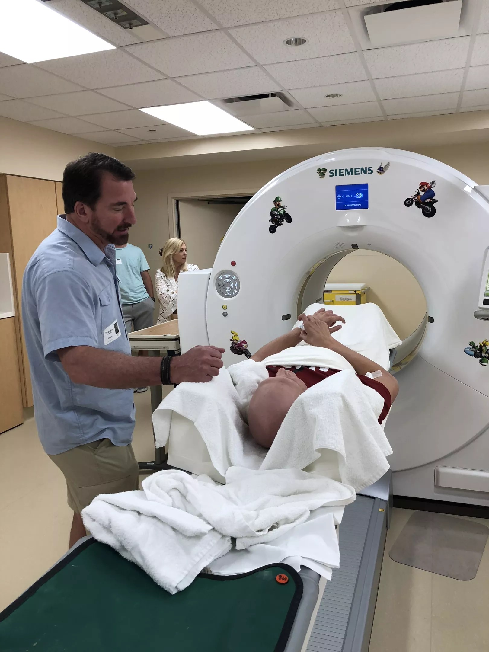 Luke endures a full-body CAT scan to locate possible cancer growth.