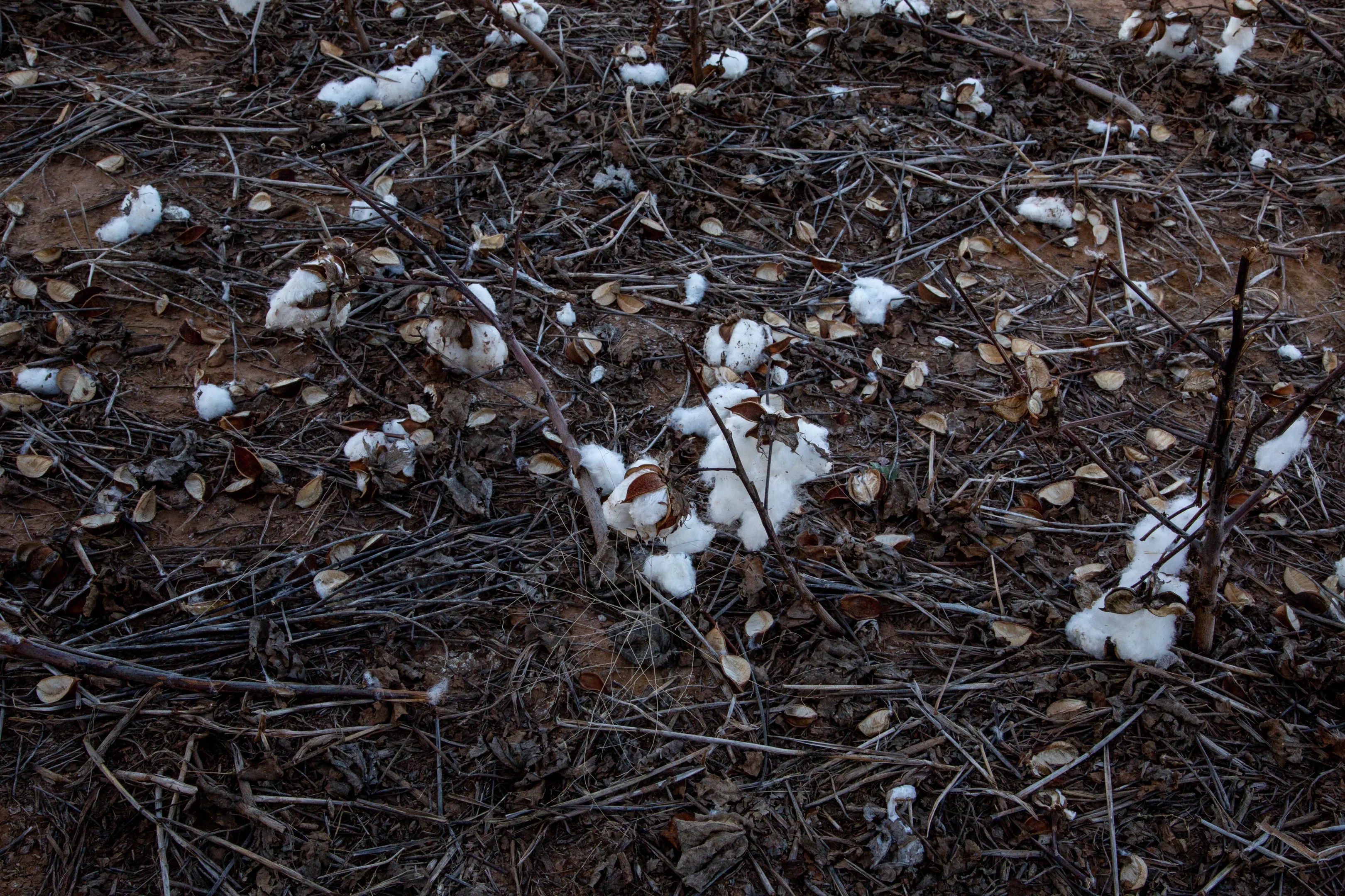 Scattered cotton stalks and bolls from this year