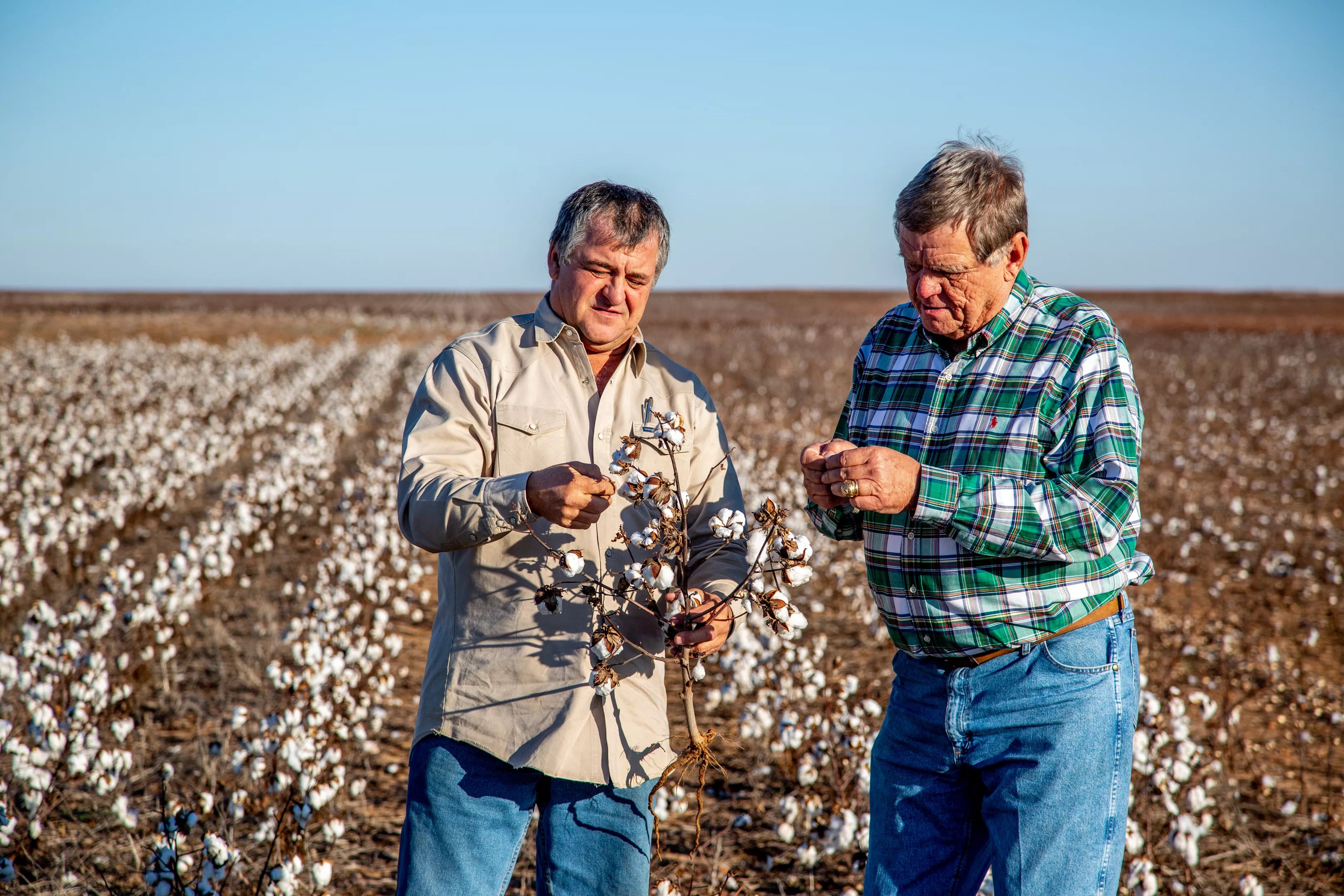 McAlister and Mahler chew over the question of going back, circling back to it repeatedly. It’s a Catch-22 of sorts. If they could track down functioning low-tech equipment, it would certainly be cheaper to own and repair than the hyper-advanced equipment they use today. But those tractors and combines require more workers to operate, whereas today’s farm machines are primarily run by one person. Farm help is harder to find than it used to be, they say. The seeds they use now have been engineered to be hardier and produce more cotton.