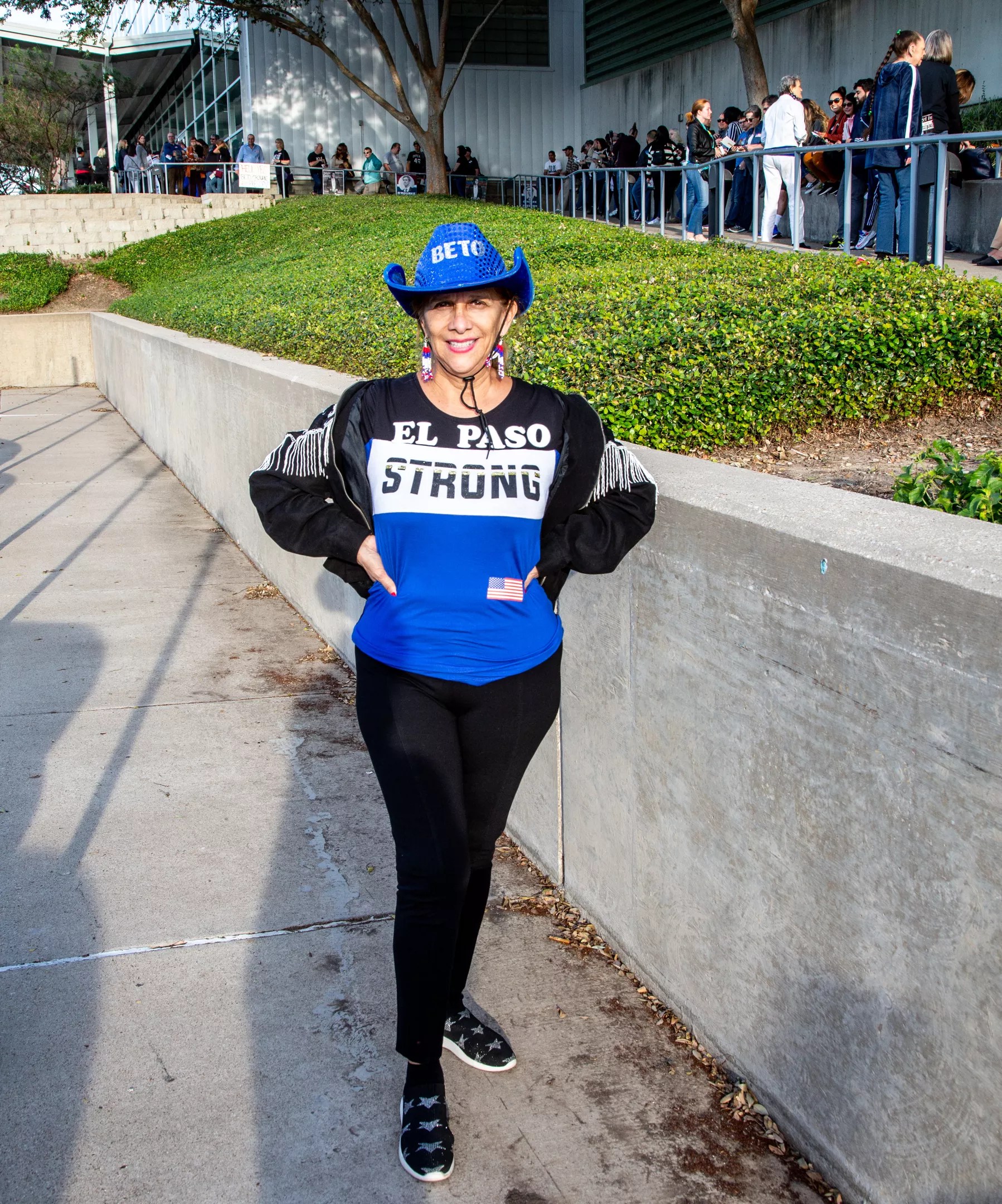 Sanchez-Chibli, who attended the rally in a rhinestone-emblazoned “Beto” hat and “El Paso Strong” T-shirt, is from El Paso, although she lives in Dallas now. Her father and O’Rourke were members of the El Paso County Commissioners Court together. In O’Rourke, she sees the same down-to-earth spirit her father had.