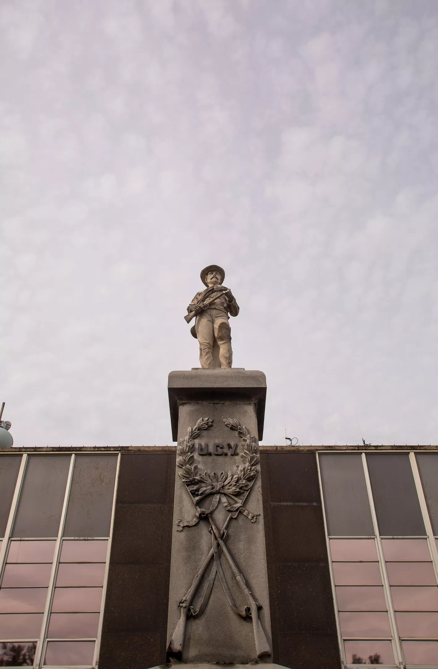 Crowned with a rifle-toting soldier, the statue came up in 1911, more than four decades after the Civil War ended. It was sponsored by the United Daughters of the Confederacy, a hereditary association whose founding members hoped building memorials would “tell of the glorious fight of the greatest odds a nation ever faced.” The statue in Kaufman has moved a couple of times, but it’s stood outside the current county courthouse since 1956.