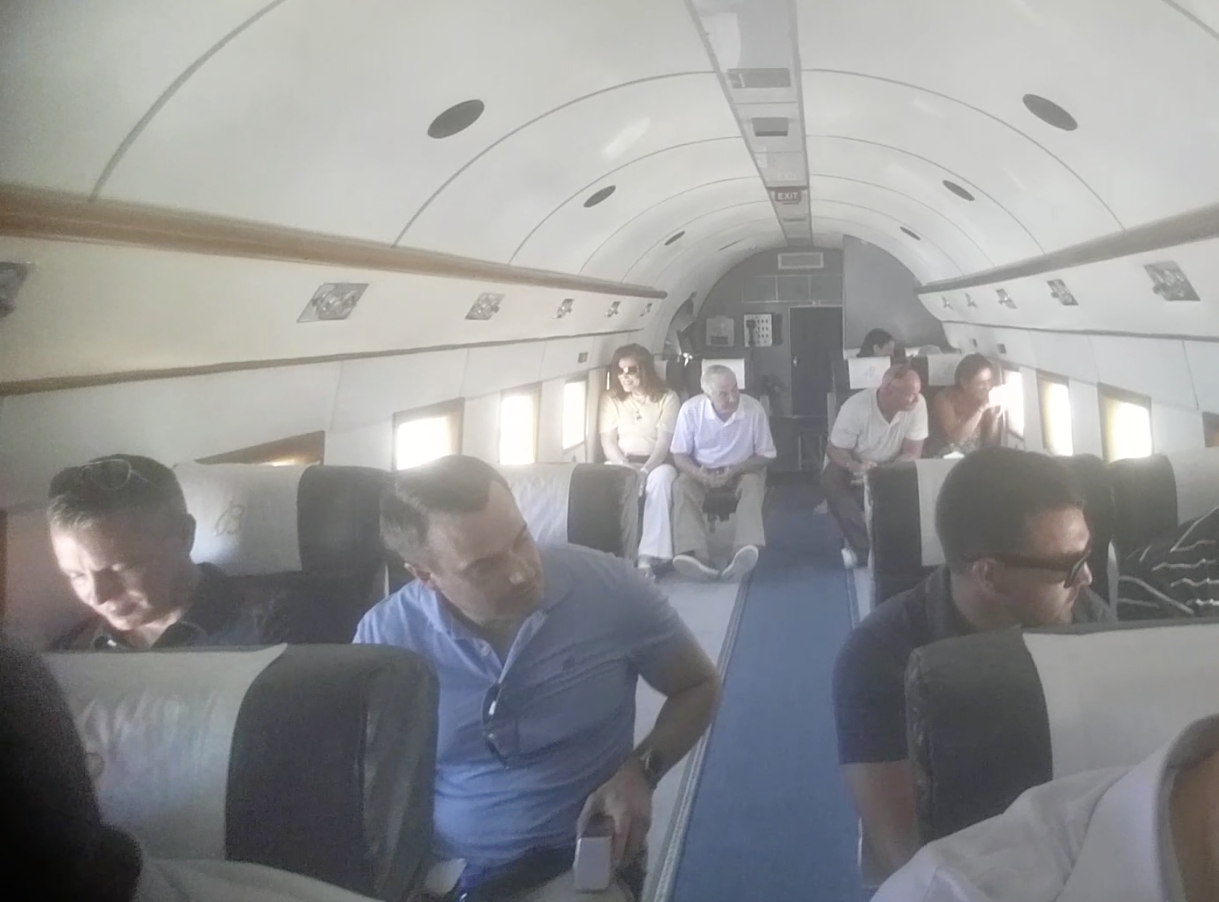 The DC-3 had seats removed to make room for extra fuel tanks.
