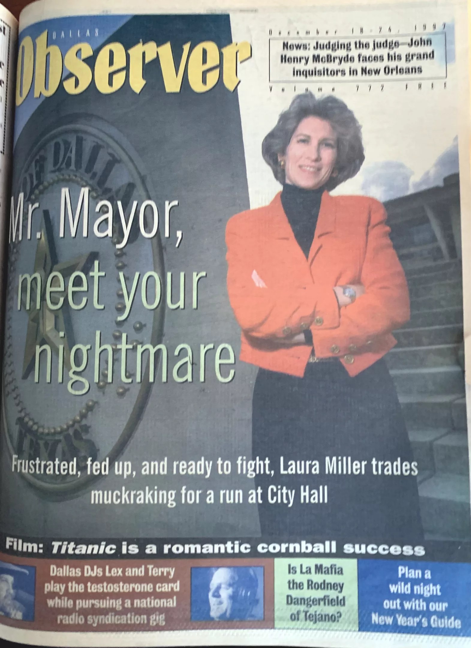 During her time in the city’s top elected job, Miller frequently butted heads with Mayor Pro Tem Don Hill, who successfully led the fight against a ballot measure that would’ve made Dallas a “strong-mayor” city and won $43 million in city funding for Victory Park, over Miller’s objections.