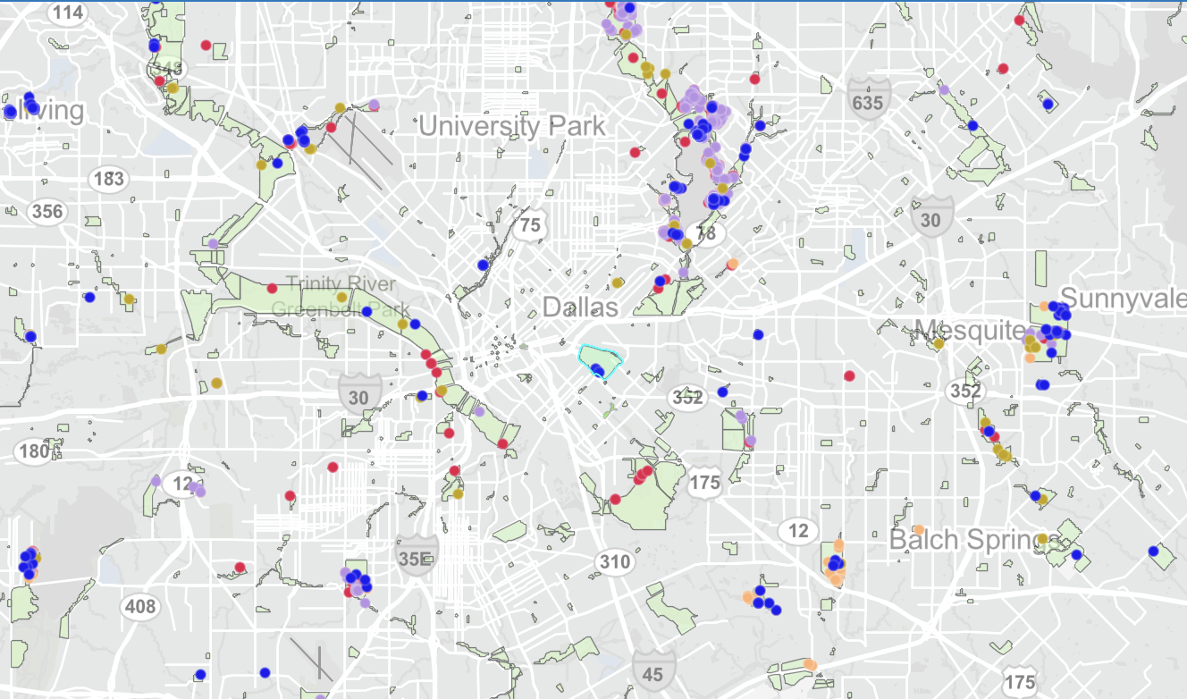 Click on the blue dot in Fair Park, indicating the presence of the state flower, and you’ll see a pop-up screen telling you: “There are confirmed sitings of the Texas Bluebonnet in this park. The estimated bloom dates are from March 16 to April 30.”