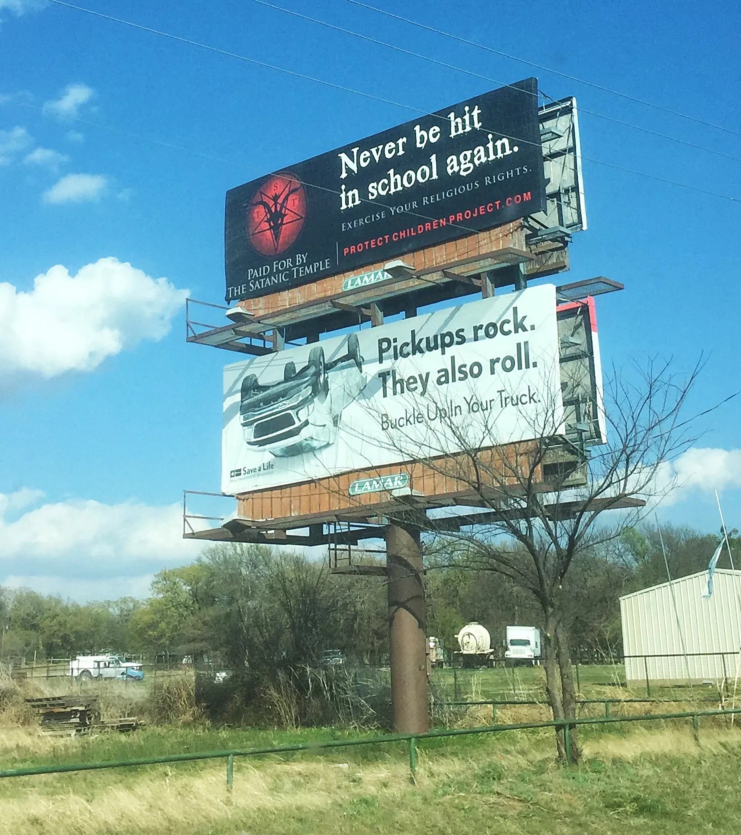 The Satanic Temple advertised its Protect Children Project on a billboard in Springtown, Texas.