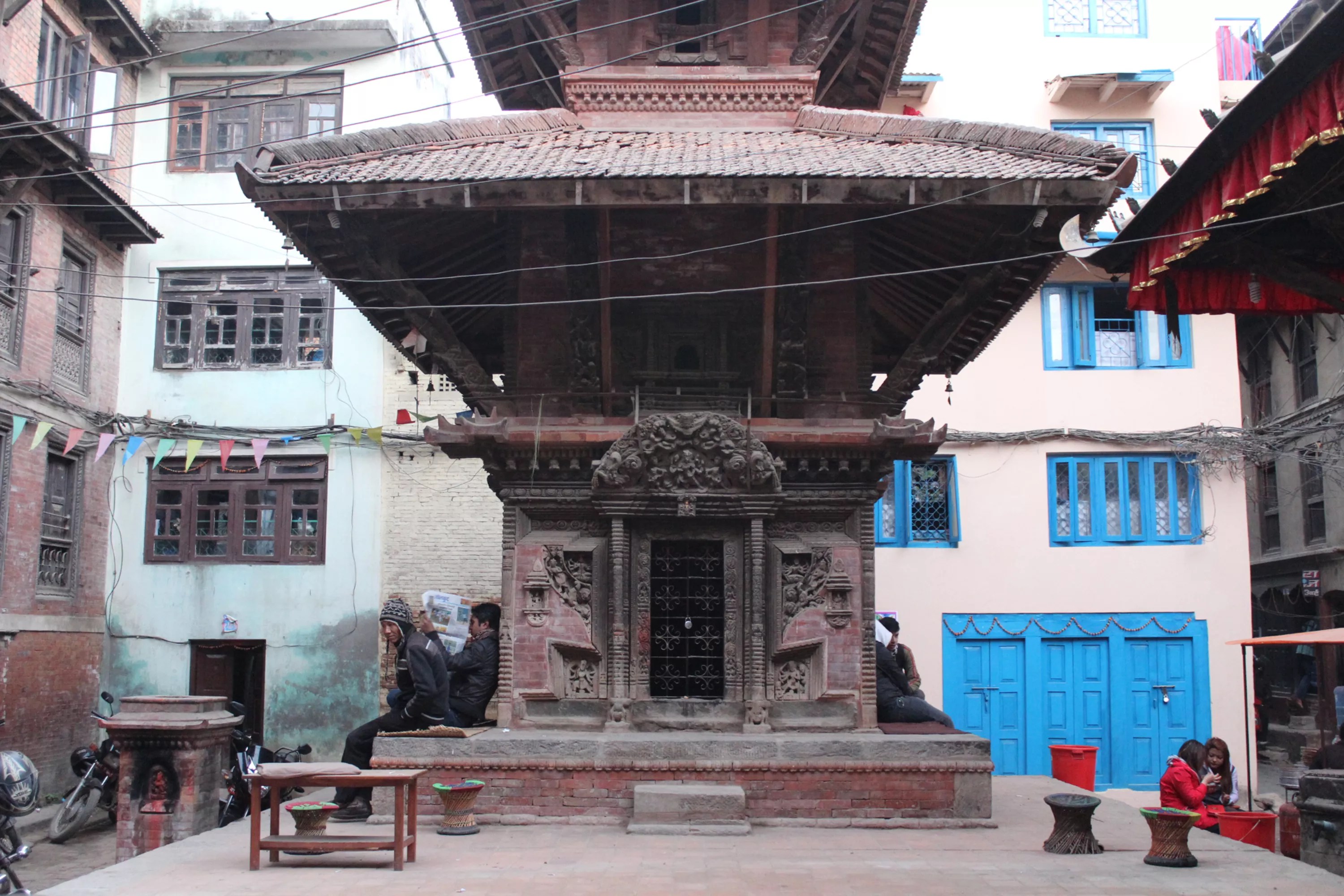A shrine in Nepal that once housed a statue of the Hindu deities Narayana and Lakshmi. The statue was stolen in 1984 and is now on loan at the Dallas Museum of Art.