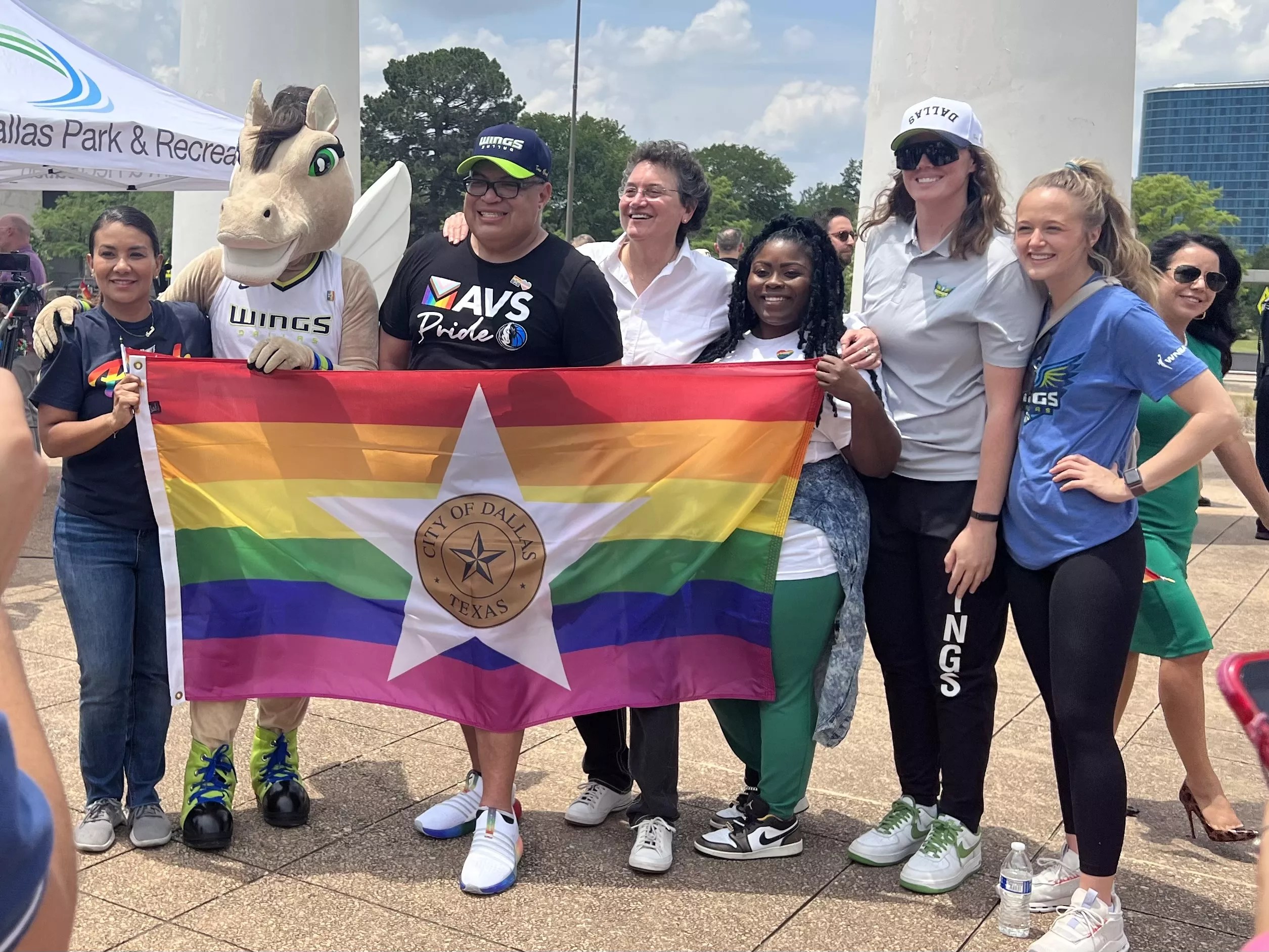 Under the warm sun on Thursday, local officials kicked off Pride Month with the raising of Dallas’ rainbow-striped Pride flag at City Hall Plaza and Dallas Love Field.