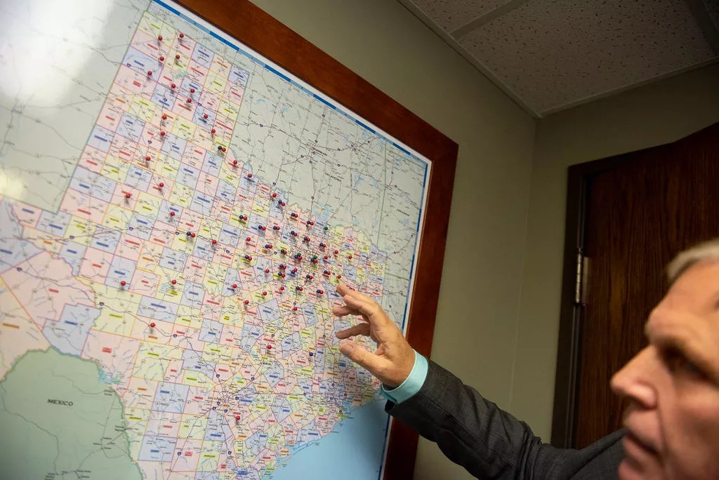 For a decade now, Sloane has become more like a traveling salesman than a defense attorney. He travels across the state to defend clients facing marijuana charges in places like Childress, Palo Pinto and Wichita counties and mostly finds himself making the trek up and down the U.S. 287 corridor and over to U.S. 82 and Interstates 27 and 40 in West Texas. He’s on the road at least three times a week and recently bought and restored a tour bus to save on hotel expenses.