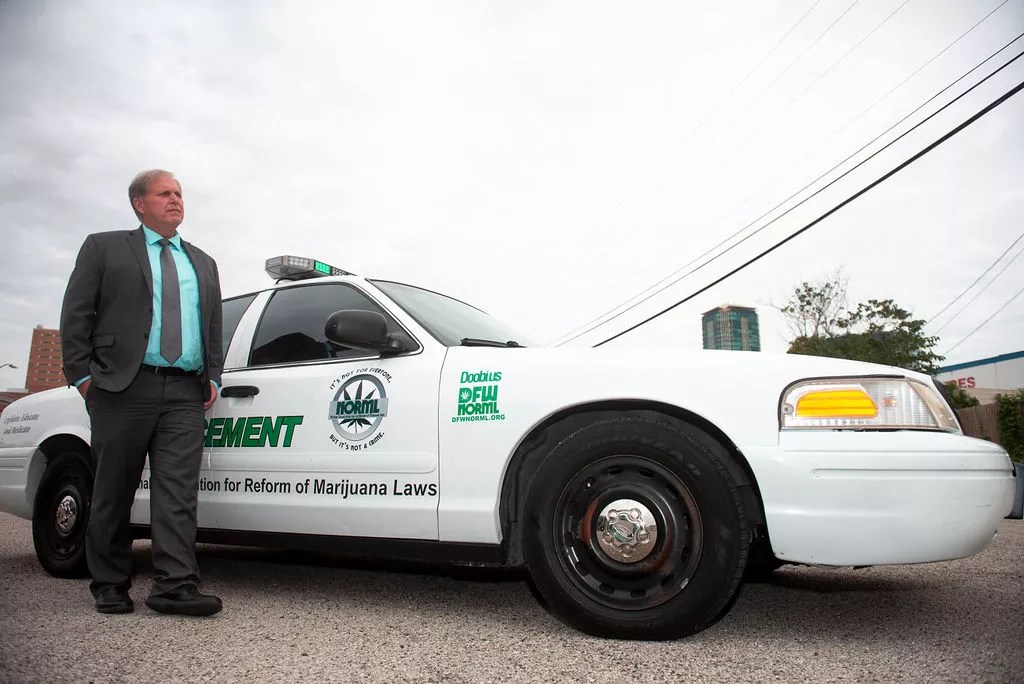 Sloane outfitted a retired police cruiser as the NORML patrol car.