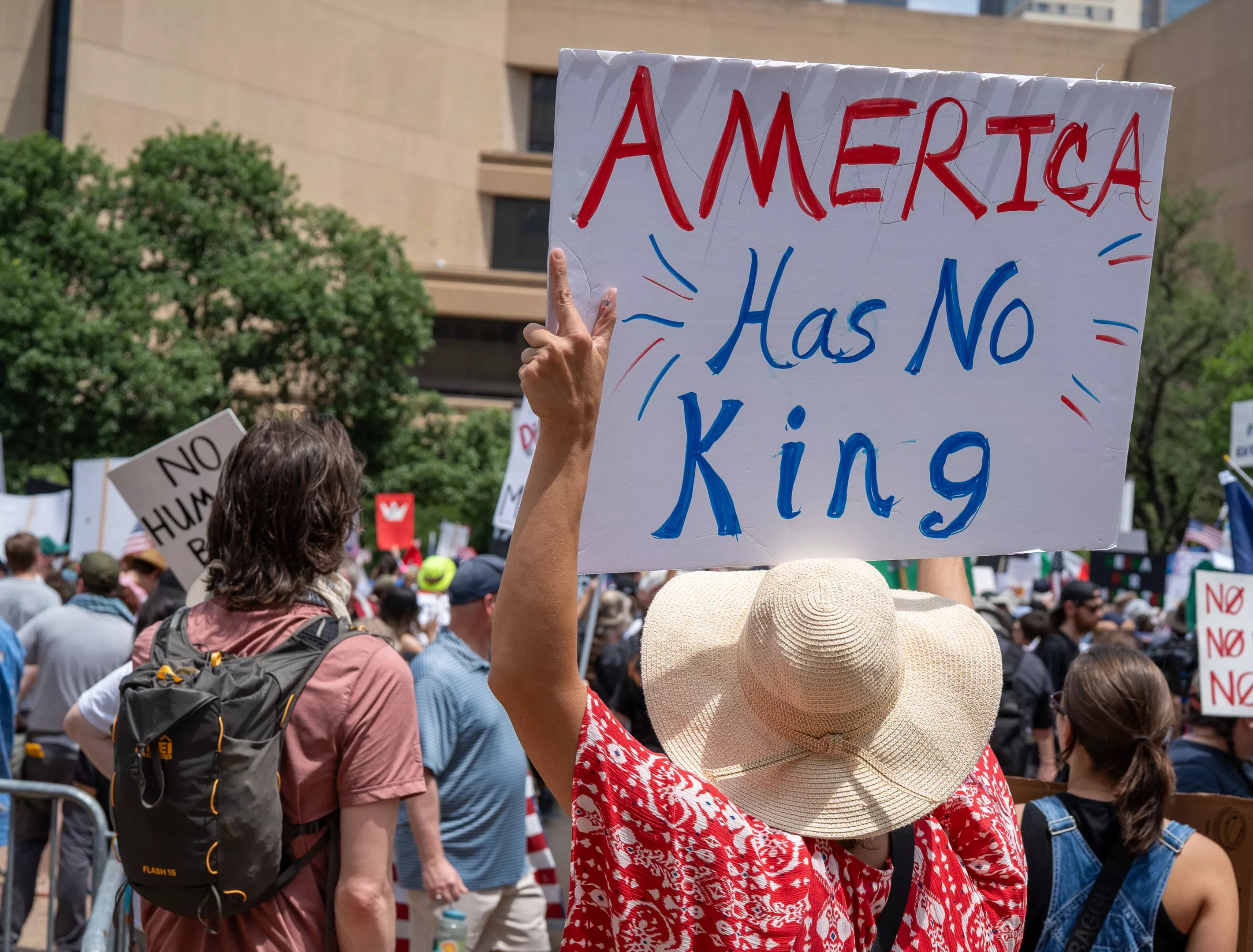 The Dallas Morning News reported that “in Dallas alone, up to 10,000 people gathered for the demonstration at its peak.” Prior to Saturday, national No Kings organizers estimated that as many as 1,800 events across the country would take place on Saturday.