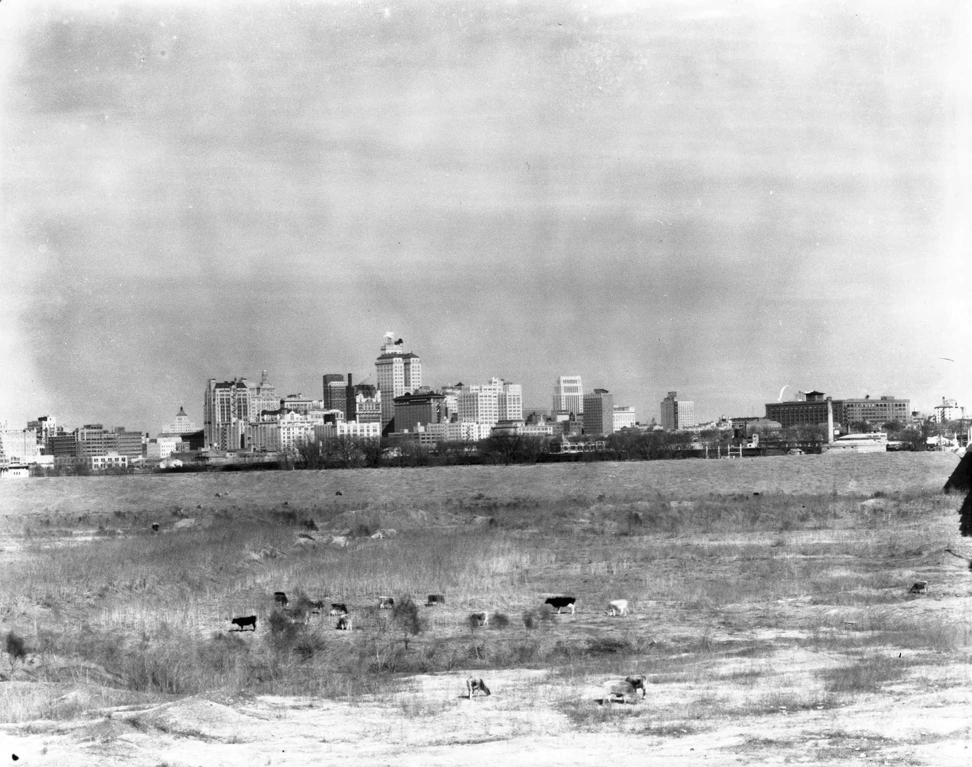 1936 skyline of Dallas, Texas, with cattle in the foreground. From the collections of the Dallas History & Archives Division, Dallas Public Library Bird’s-eye view of Dallas in 1946. From the collections of the Dallas History & Archives Division, Dallas Public Library