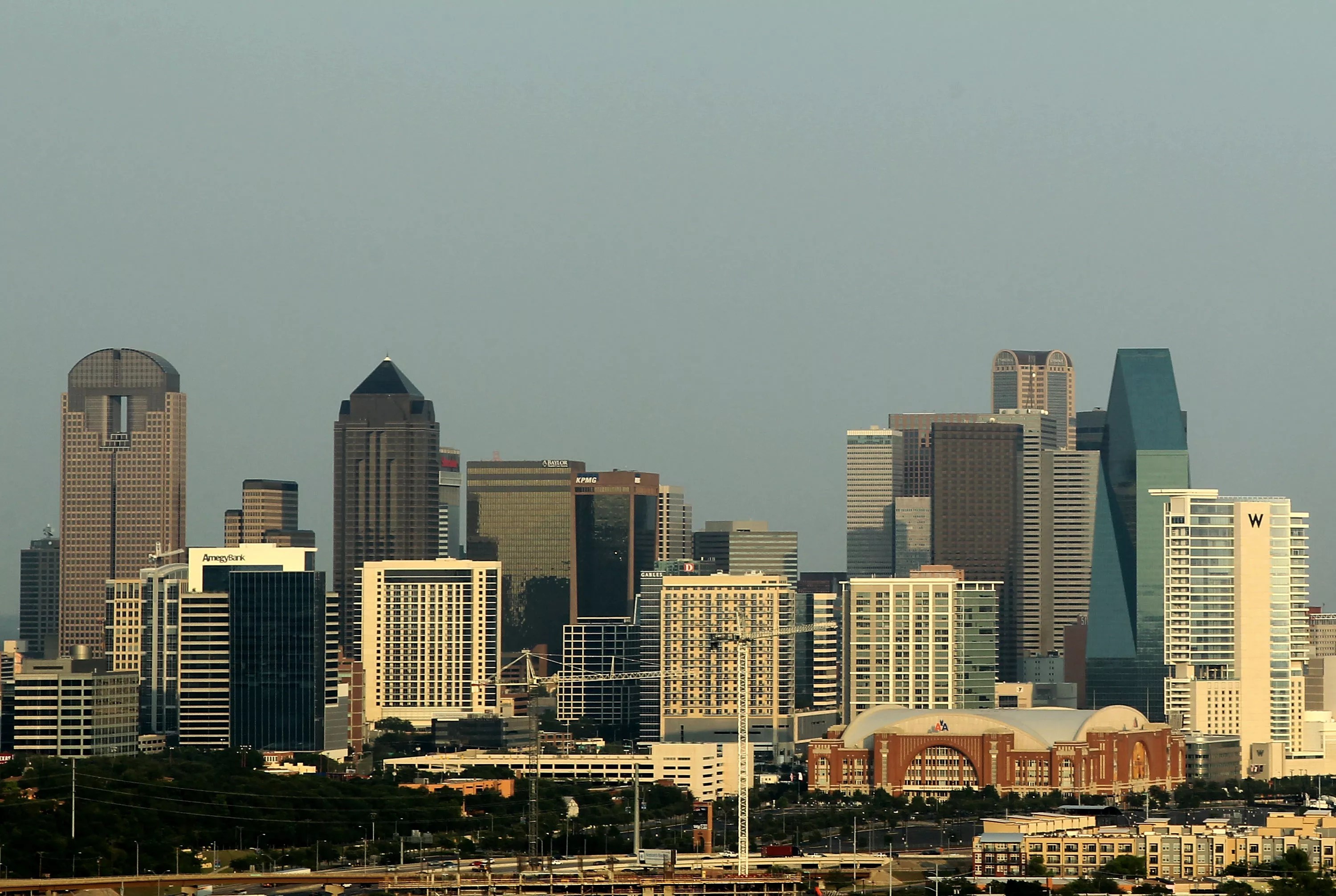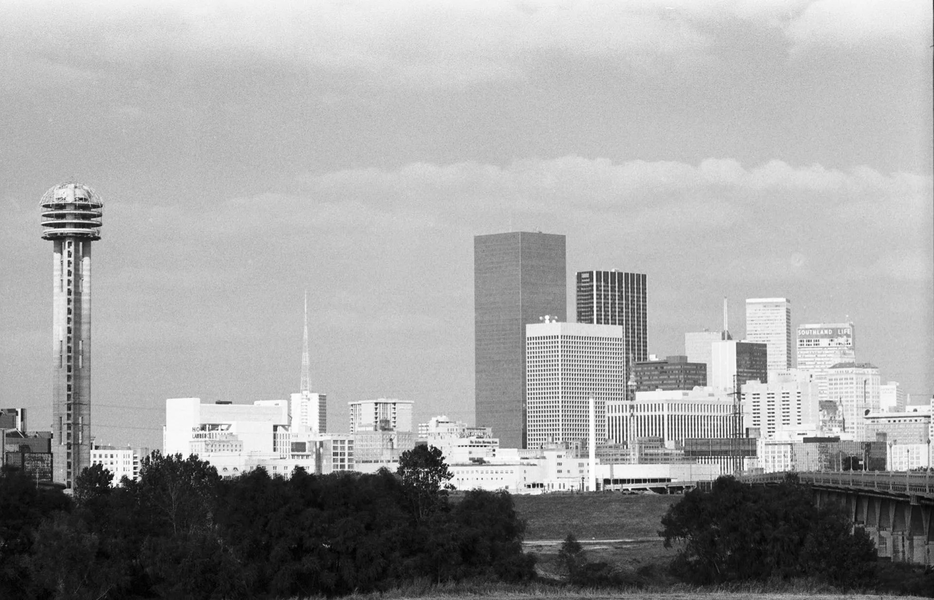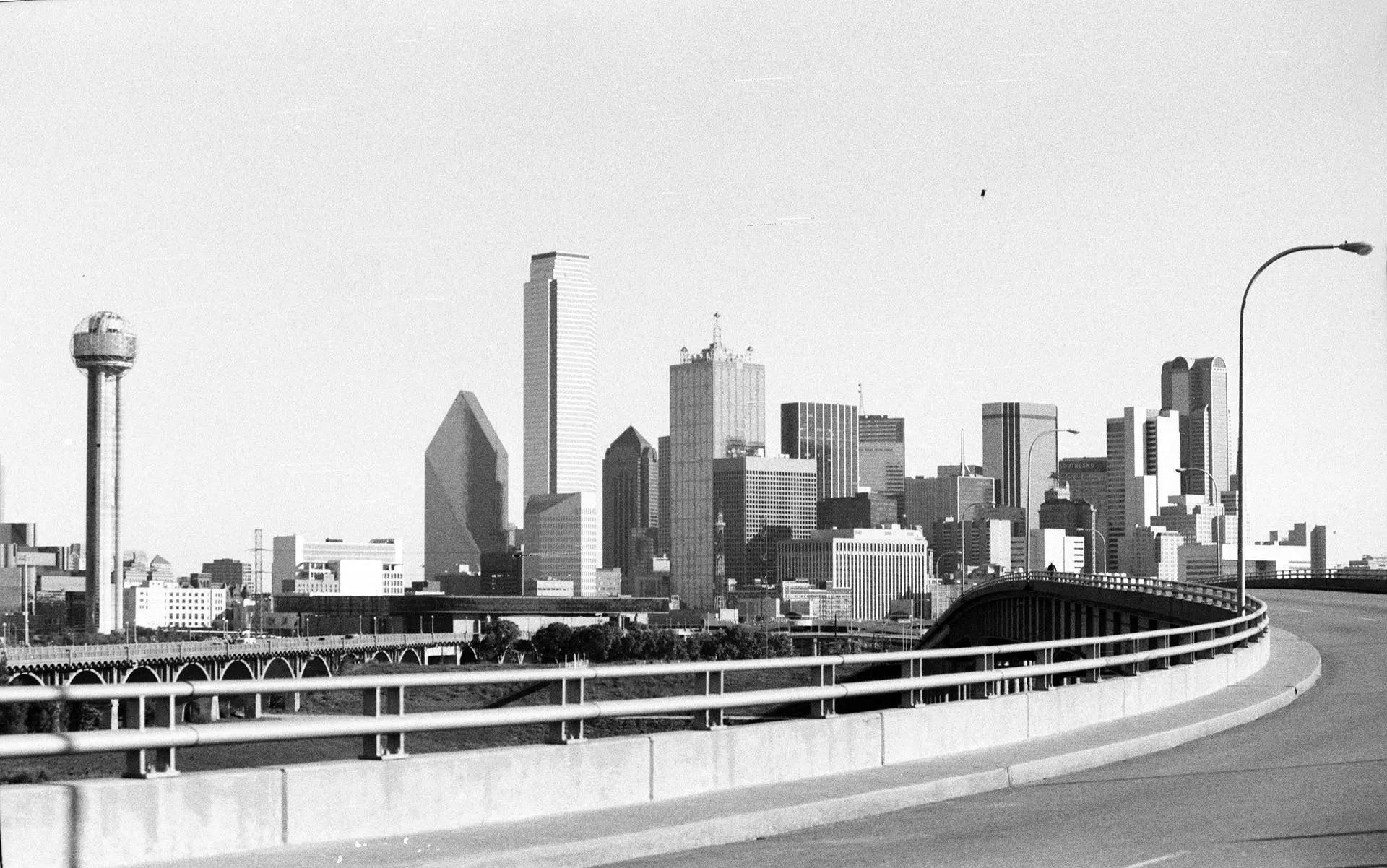 A 1990 view of downtown Dallas skyline taken from the Jefferson Avenue Viaduct From the collections of the Dallas History & Archives Division, Dallas Public Library
