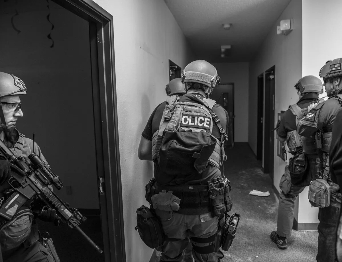 In that context, the challenge left to police is more logistical than moral or political. How do they get into that house and not get shot? They have one brief moment, a snap of the finger when surprise is still on their side, before the shock fades and the people inside have time to grab guns and shoot back.