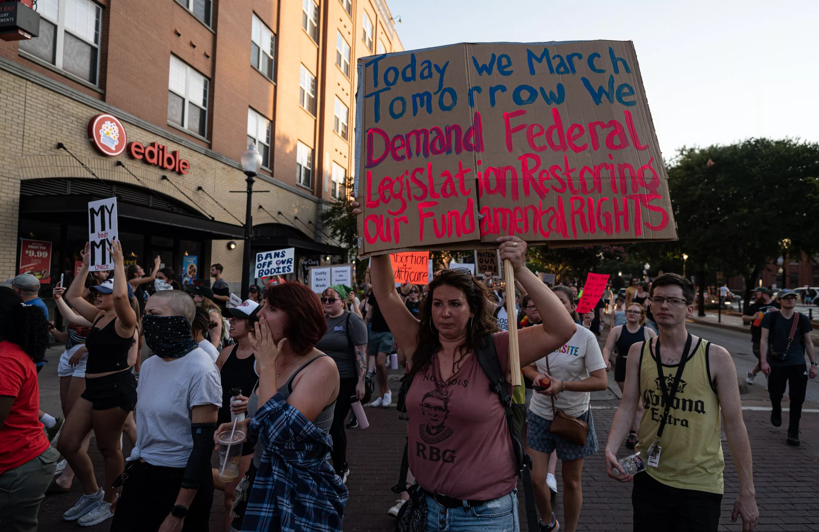 Activists protest the Supreme Court's decision to overturn Roe v Wade in downtown Dallas on June 24, 2022.