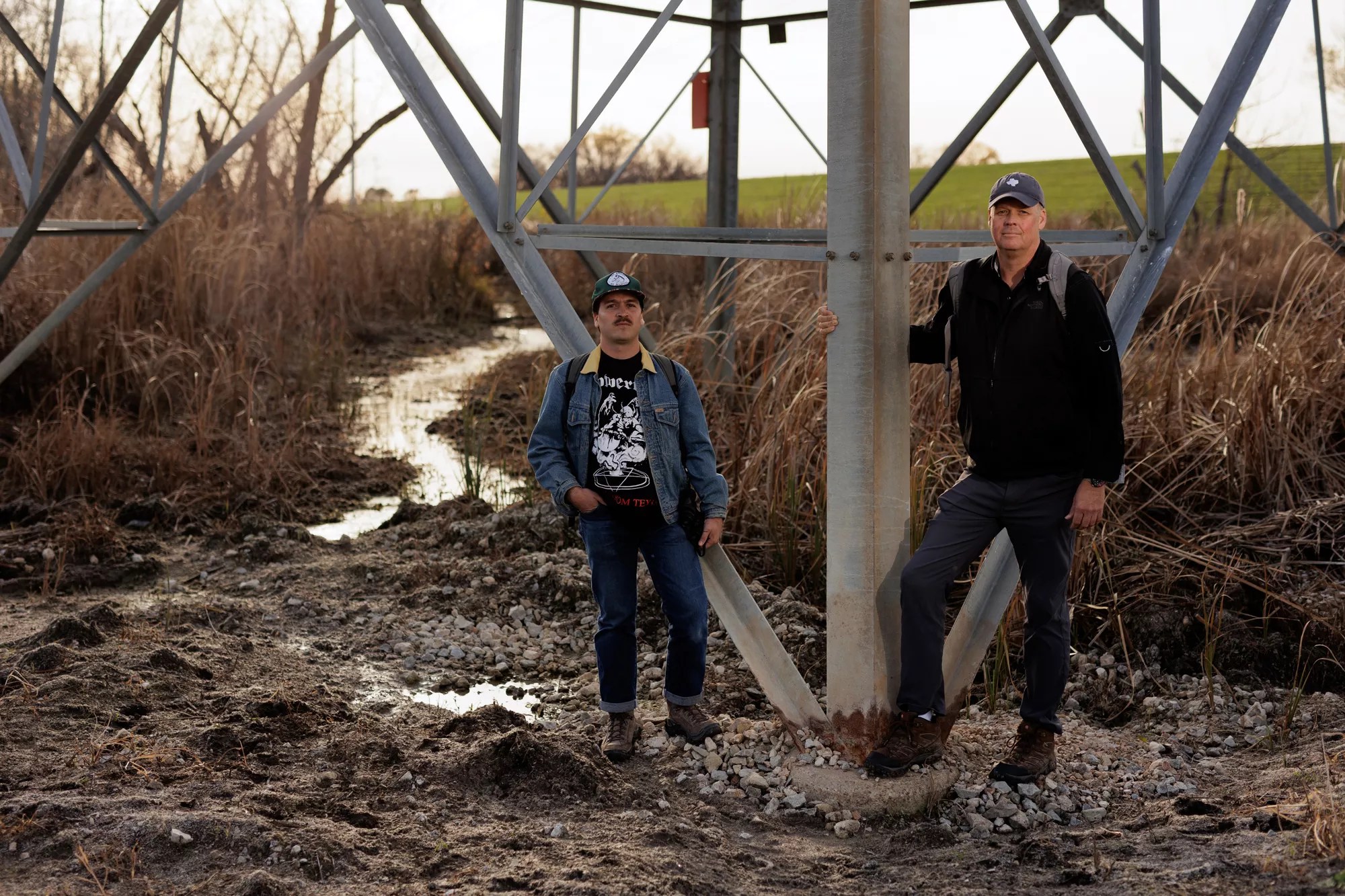 Gravel crunched beneath their hiking boots as the two men neared the barren expanse, backpacks on and binoculars in hand. Dead trees dotted the horizon. A variety of tracks marked the ground, from feral hogs to coyotes to ATVs, and a couple of broken beer bottles reflected the winter sun.