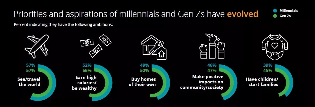 International travel is way ahead of babies for millennials and Generation Z.