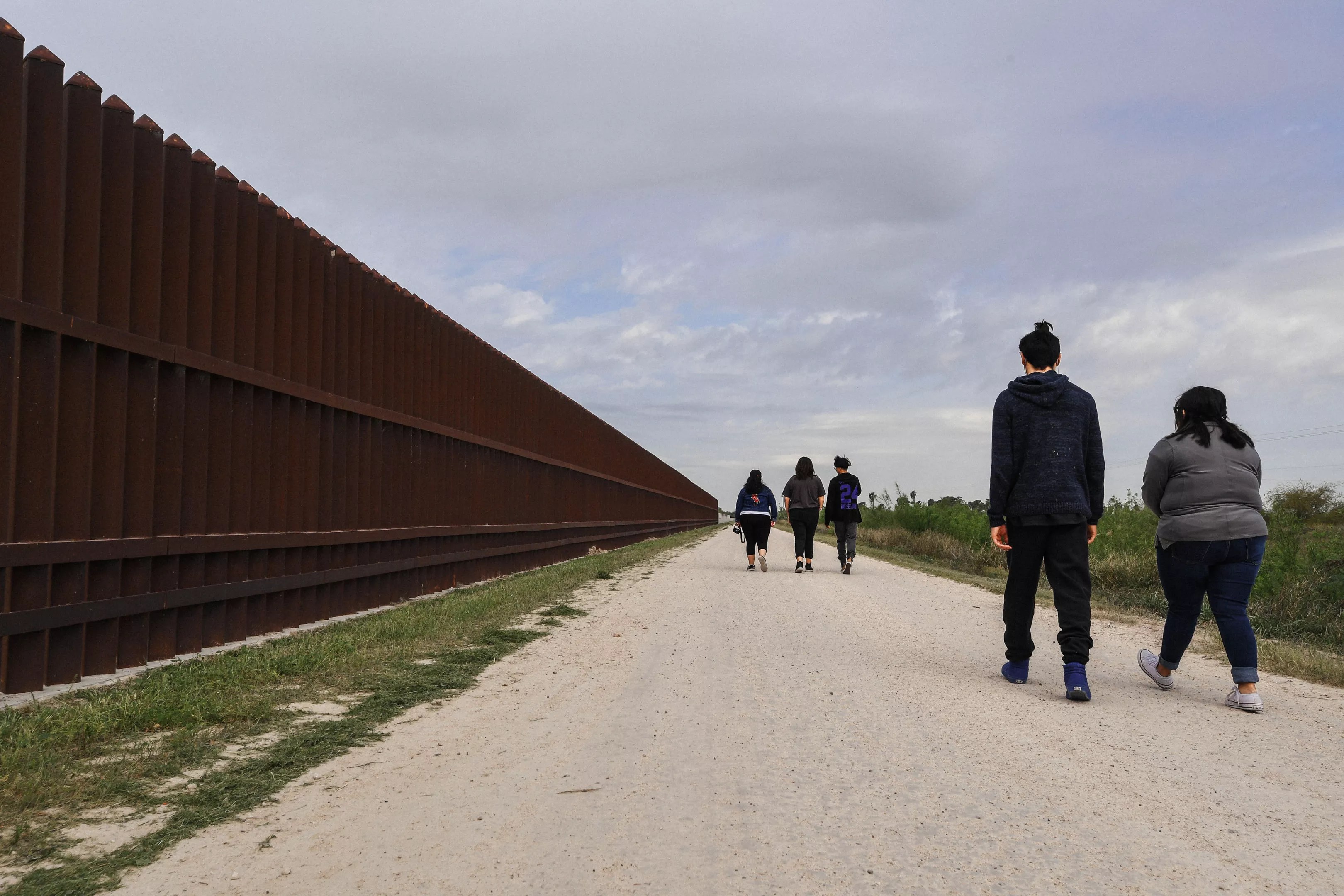 It stops at a completed section of the border wall that Trump has promised to extend along the nation’s southern boundary. In Hidalgo, it looks more like a fence, its rusty brown vertical palings standing 21 feet tall, reminding one of the iron bars on a jail cell. Standing beside it takes the playfulness out of all the students. Some walk along the wall in silence, and others start to cry.