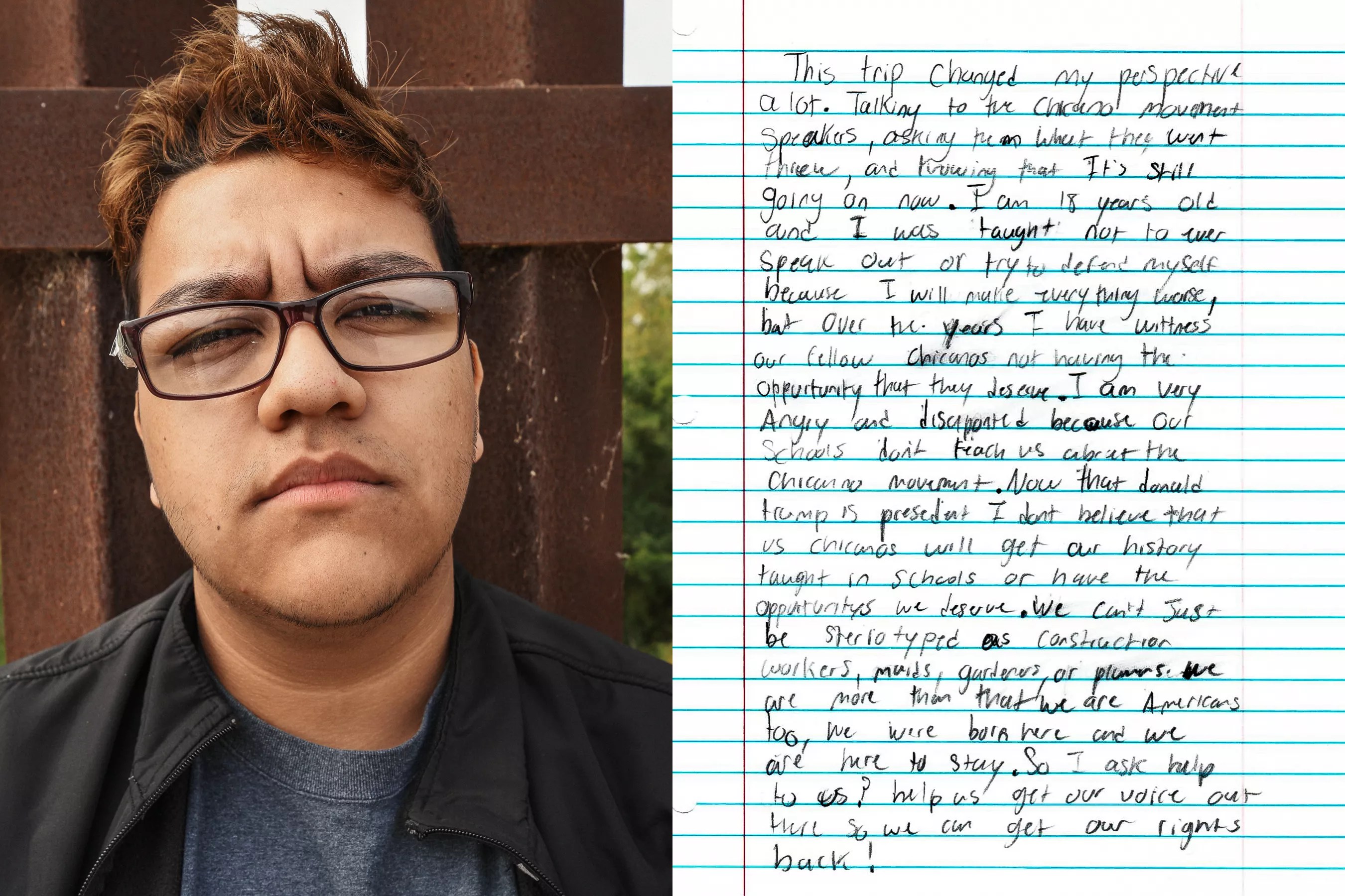 Gabrielle, a shy 17-year-old senior, joined the trip to become a voice for members of her extended family who remain in Mexico. She’s been afraid of public transportation since Trump’s election. She recalls the day she knew she had to join the trip in order to meet with other activists and learn how to stand up for herself. She was riding a bus home when a man stood up and began yelling that in Trump’s America, Mexicans will be sent back.