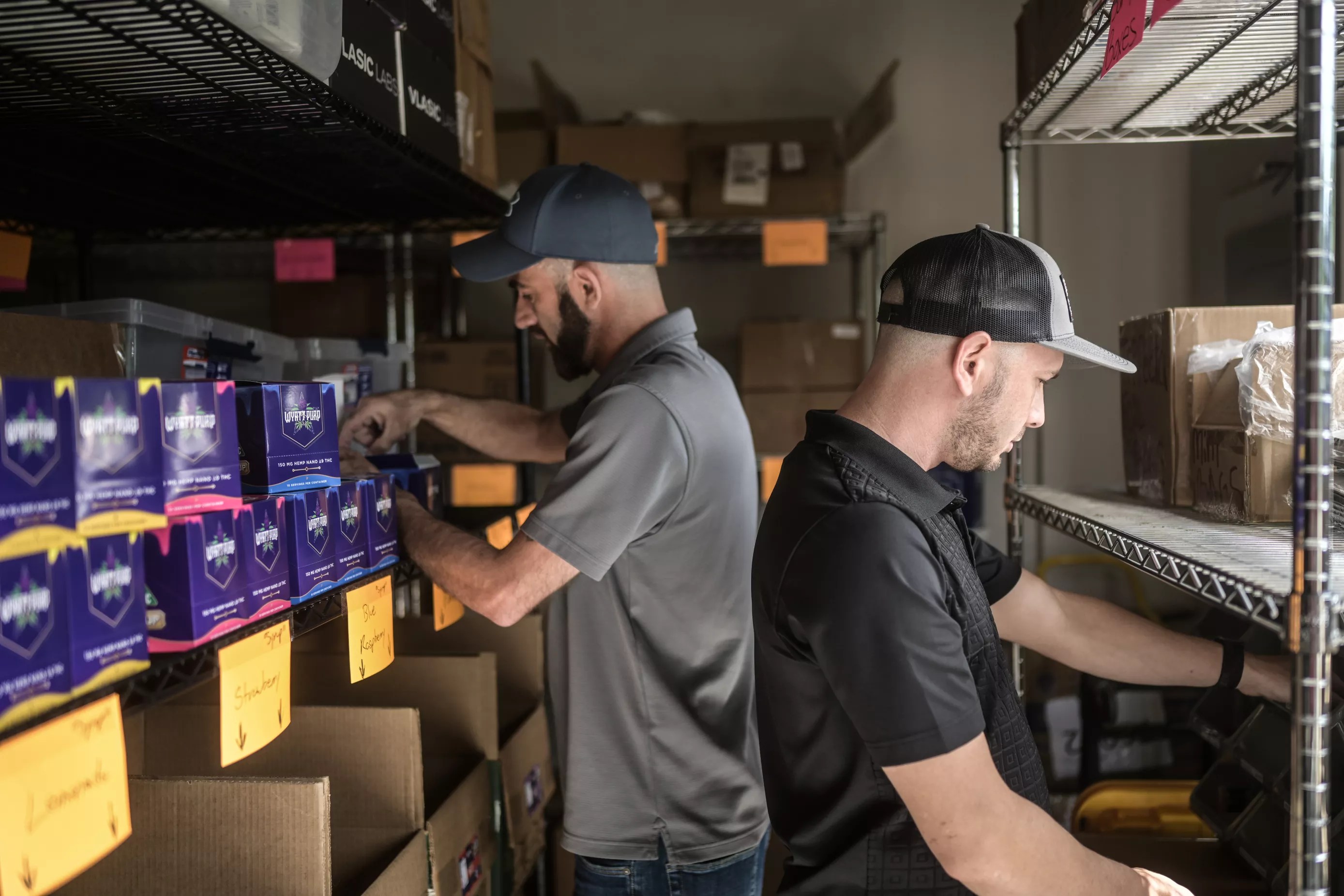 The stock room is full of THC gummies at Wyatt Purp.
