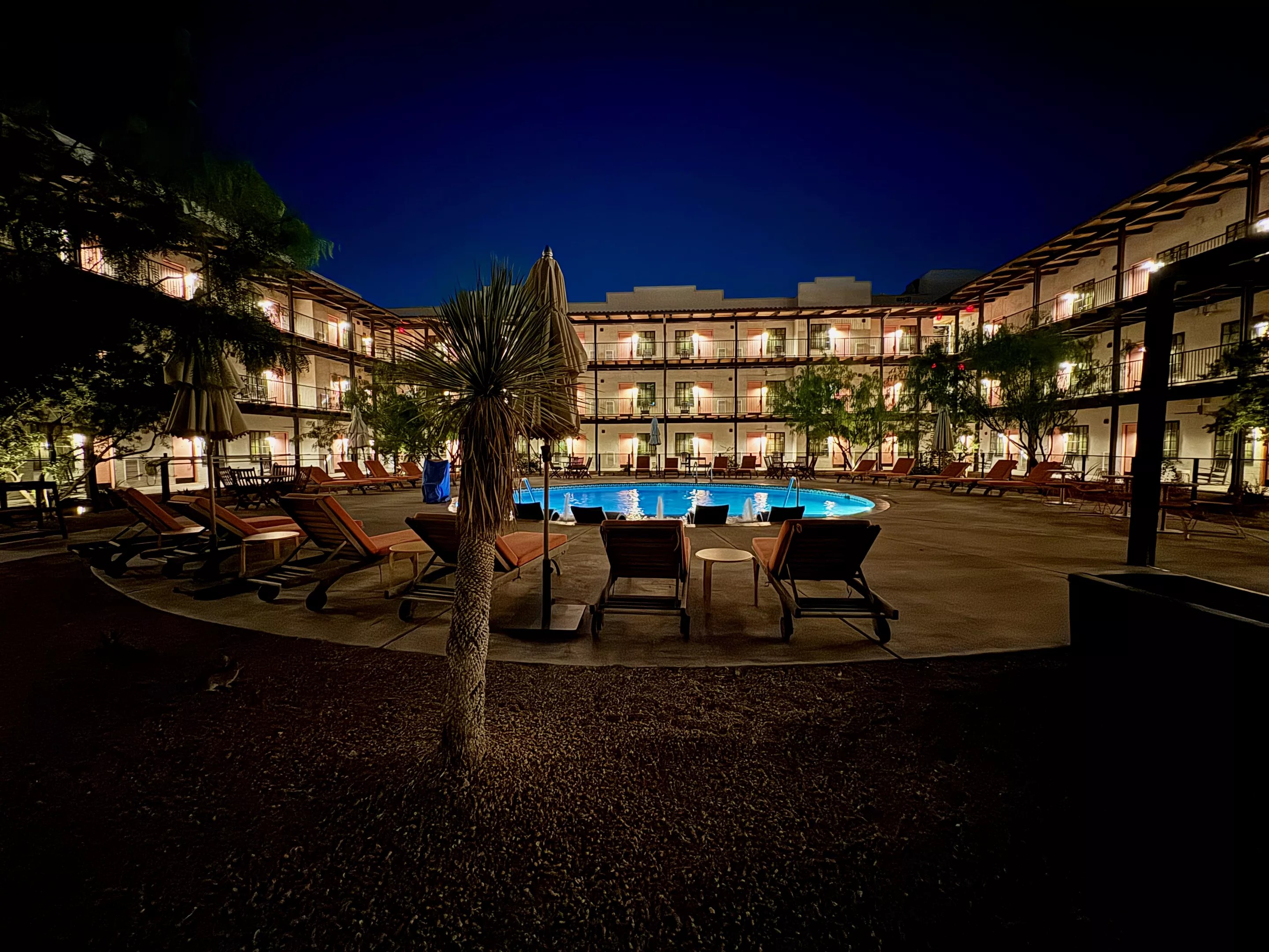 Just around the corner is a large, sexy pool at the center of the retro hotel, all with a touch of mid-century post-modern charm. A bit quirky with the potential for a lot of fun, this space reminded us instantly of The Belmont, where many great staycations were had.