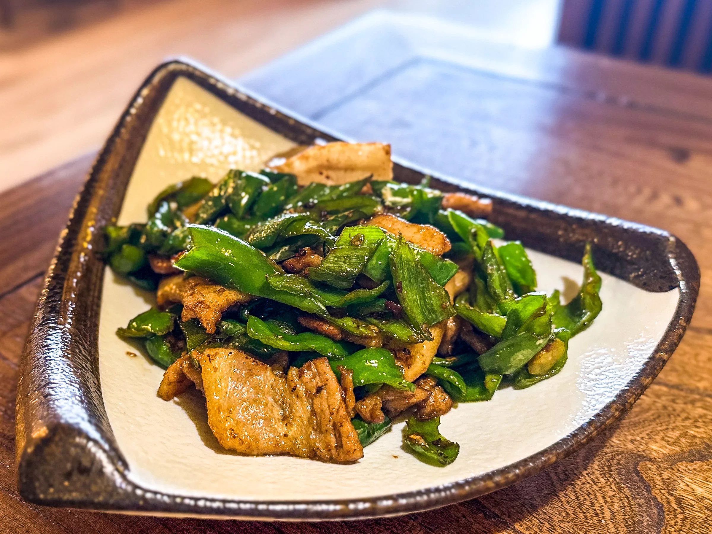 Finally, we selected spicy cabbage (we weren’t going to give up) and the house special pork. Both were good, but the cabbage was perhaps a bit expensive though generously served. It had a good flavor that, while not full-on wok hei, still offered a nicely complex flavor profile. Was it spicy, though? Let’s put it this way: It was consistent with the other spicy dishes we’d sampled. House special pork with peppers. Hank Vaughn