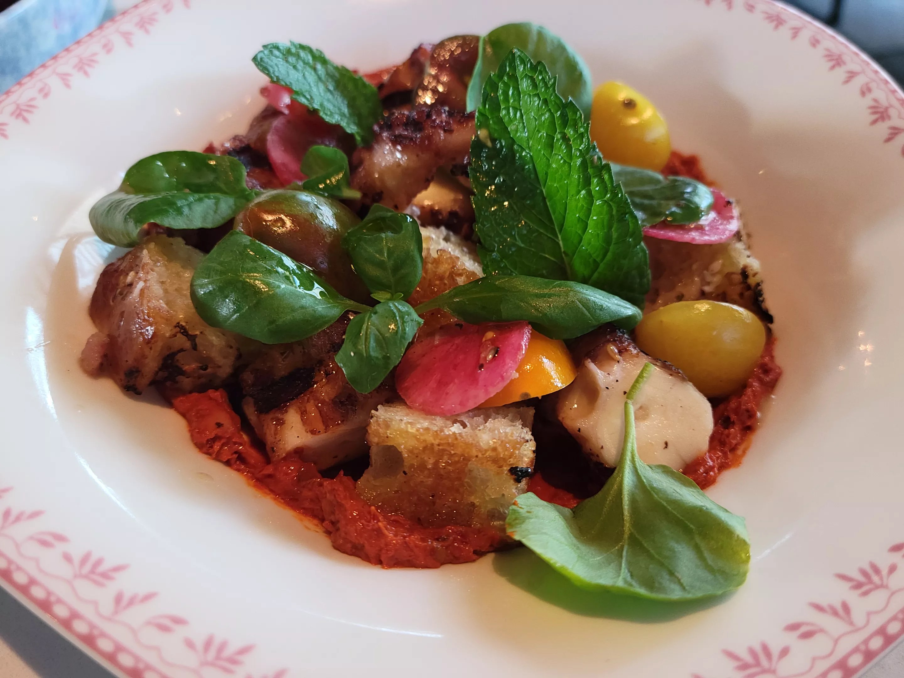 For starters, we landed on the beets and avocado ($18) made with lemon vinaigrette, wild rice and tahini. Bright pureed beets created a kaleidoscope of both taste and color. Next, we had the octopus panzanella dressed with nduja, tomato and tiny bits of focaccia ($18). Generally, octopus is served with more citrus and mild flavors, but this little sliver of heat from the nduja worked great here. The charred marine mollusk was tender enough to cut with a spoon but firm enough to have that nice chew.
