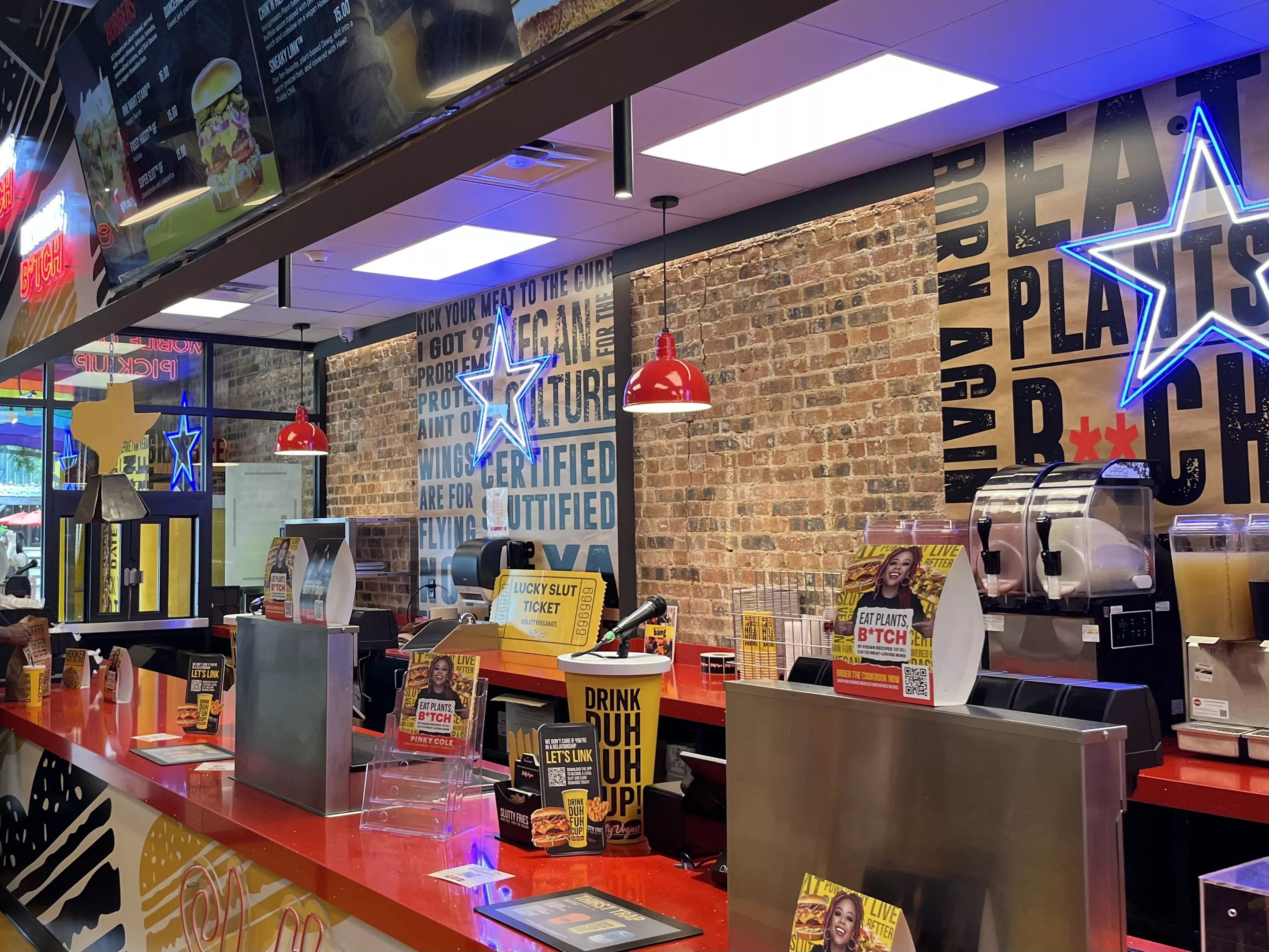 This Atlanta-based chain has big vegan party vibes plus promiscuously-named burgers loaded with vegan patties, bacon, cheese, Slut Sauce and so much more.