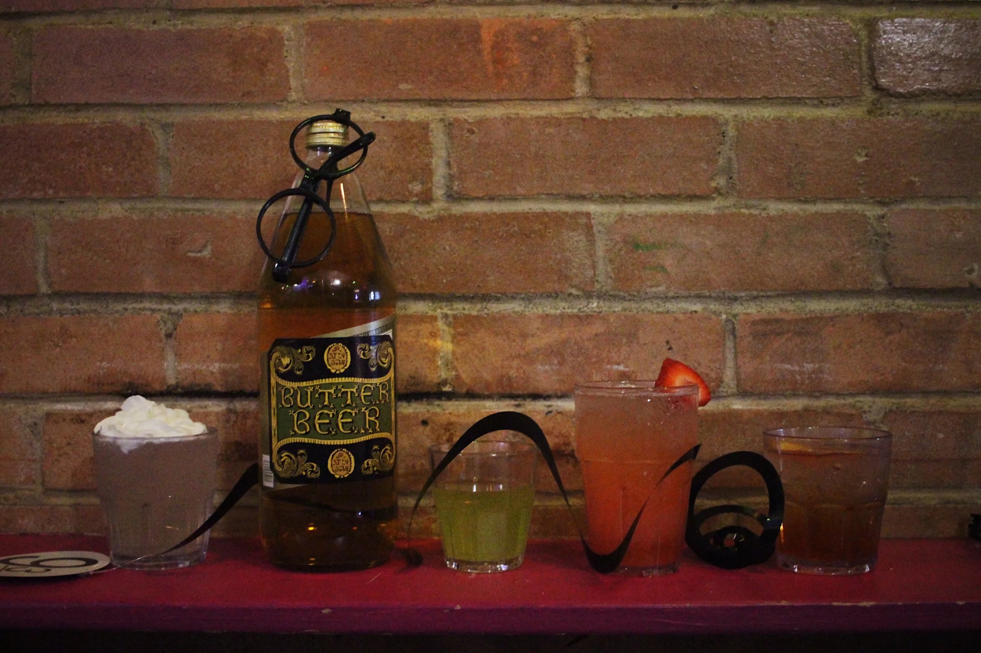 From left: Dumbledrop, butter beer, Polyjuice potion, Amortentia, fire whiskey
