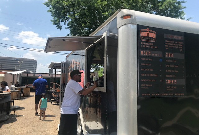 The food truck’s staff starts serving at 11 a.m., and as long as people show up before 3 p.m. on Saturday, they can generally still get food, Hurtado says. On Fridays, the truck serves burgers starting at 5 p.m. while they last. The barbecue is sold, and having local craft beer at hand doesn’t hurt either.