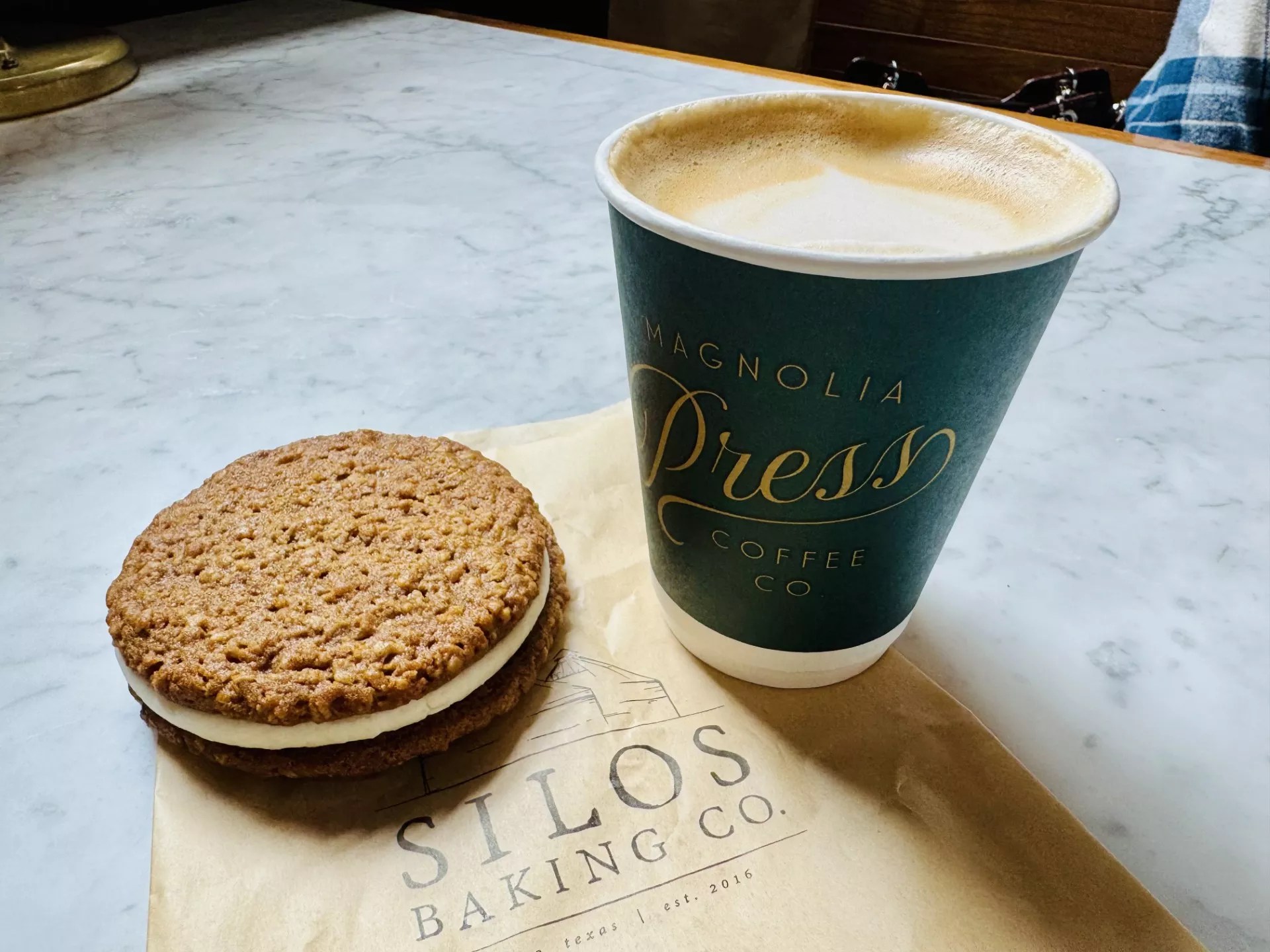 A Magnolia Press latte and the most amazing oatmeal cookie cream pie you’ll ever have in your life.