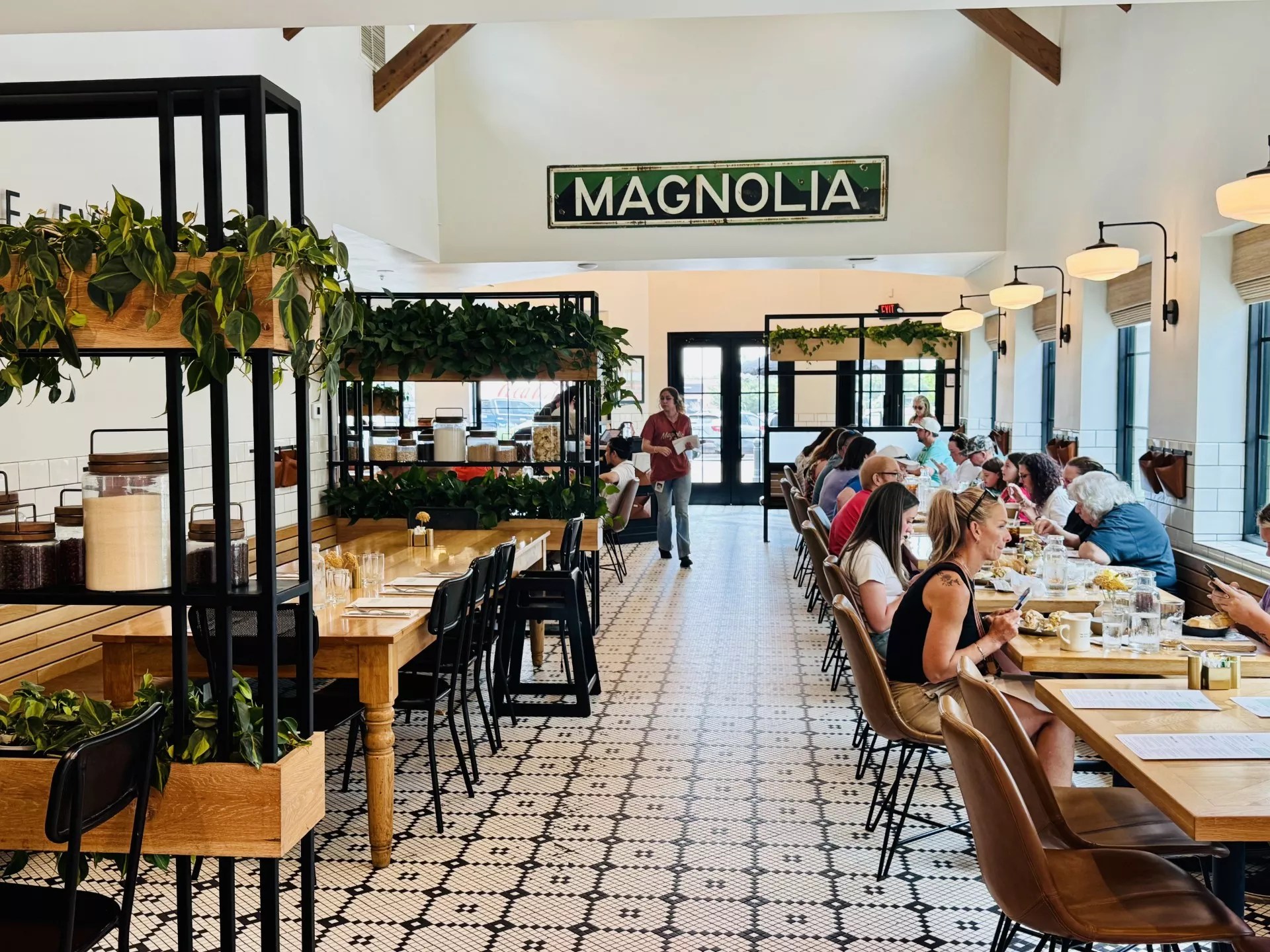 Reservations for Magnolia Table aren’t required, but they’re encouraged to minimize wait time. A “Take Away Market” is also open from 8 a.m. to 3:30 p.m., with limited to-go menu items, coffee, pastries and pre-boxed lunches.