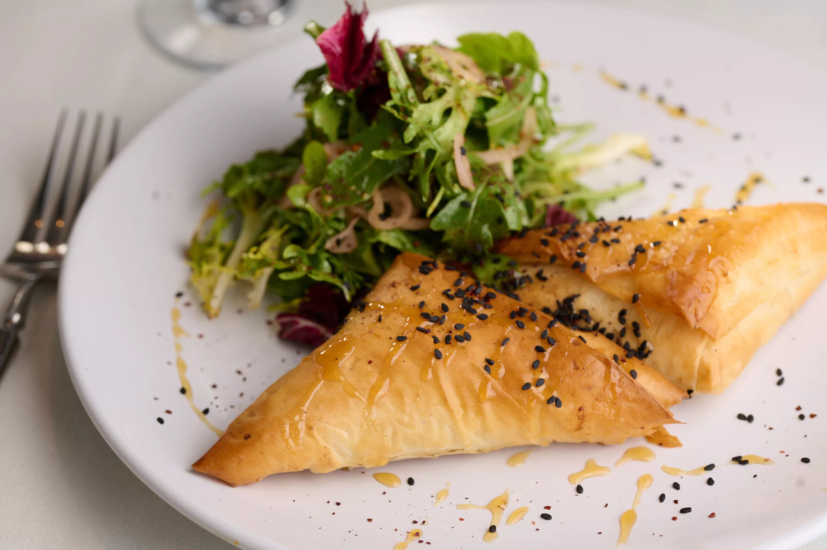 Start with a plate of tiropita and spanakopita, both with perfect phyllo.