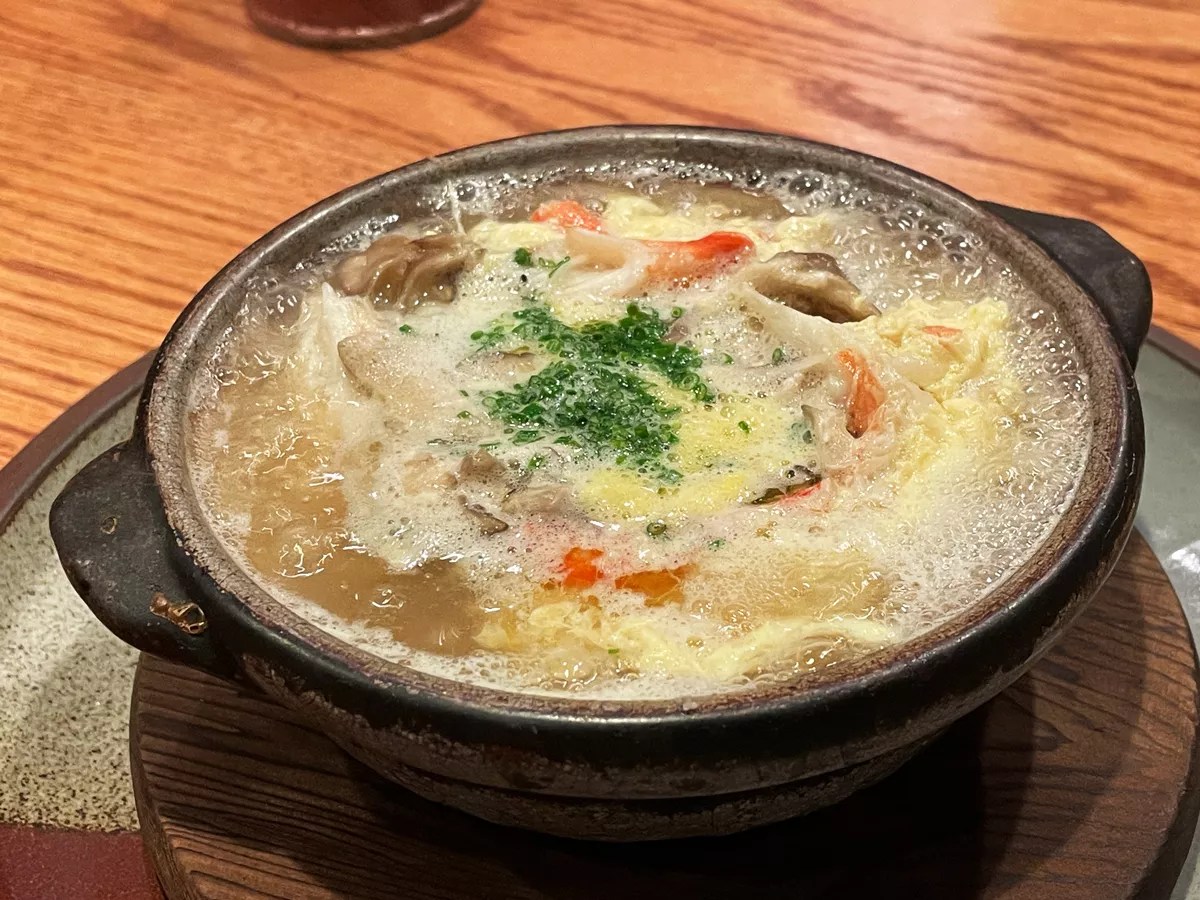 The snow crab and mushroom soup was shockingly hearty. It’s a miso-based soup with rice, crab, egg and mushrooms and it’s served at a rapid boil. A head turner for sure and very cozy for the season.